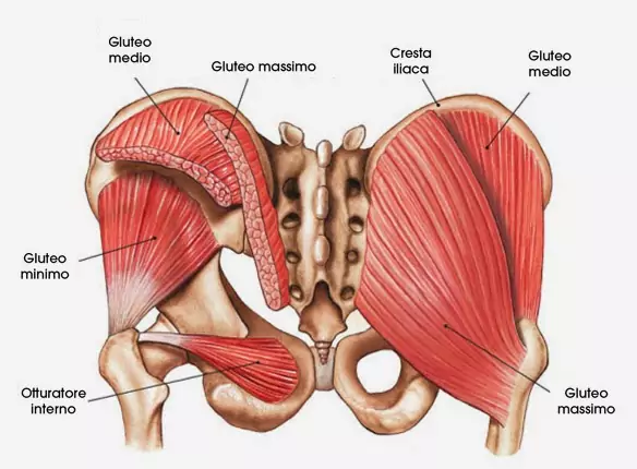 - Músculo glúteo medio – se origina en la superficie lateral del ílion, cerca de la cresta ilíaca. Participa en la abducción de cadera y rotación del muslo, además de estabilizar en la marcha o en los apoyos monopodales.