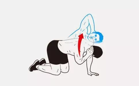 Movilidad en cuadrupedia: nos quedamos en la misma posición que el gato, colocamos una mano en la cabeza, y rotamos hacia fuera sin que la cadera se mueva y buscando la máxima amplitud de movimiento posible, para así poder centrarnos en la zona dorsal.